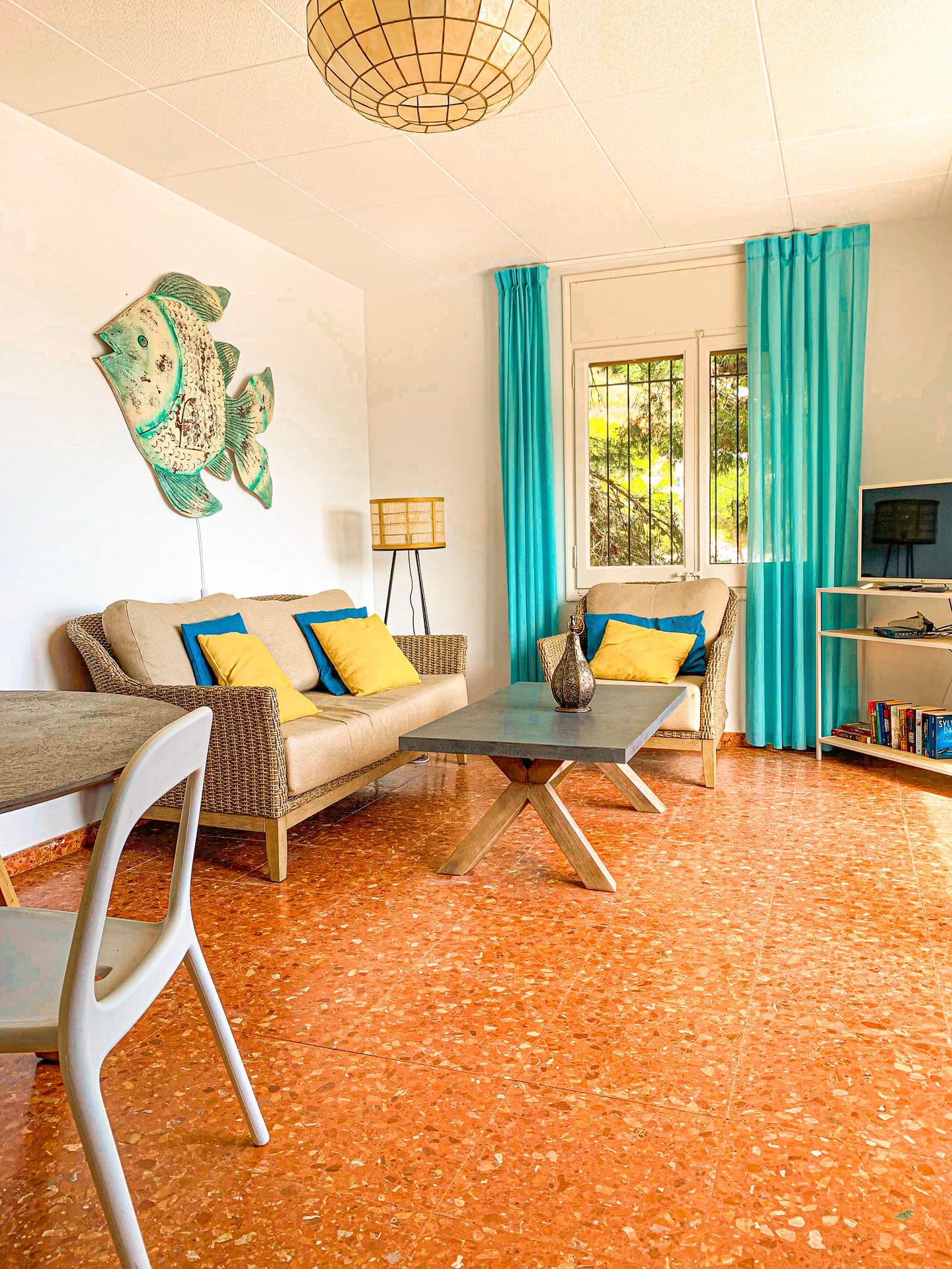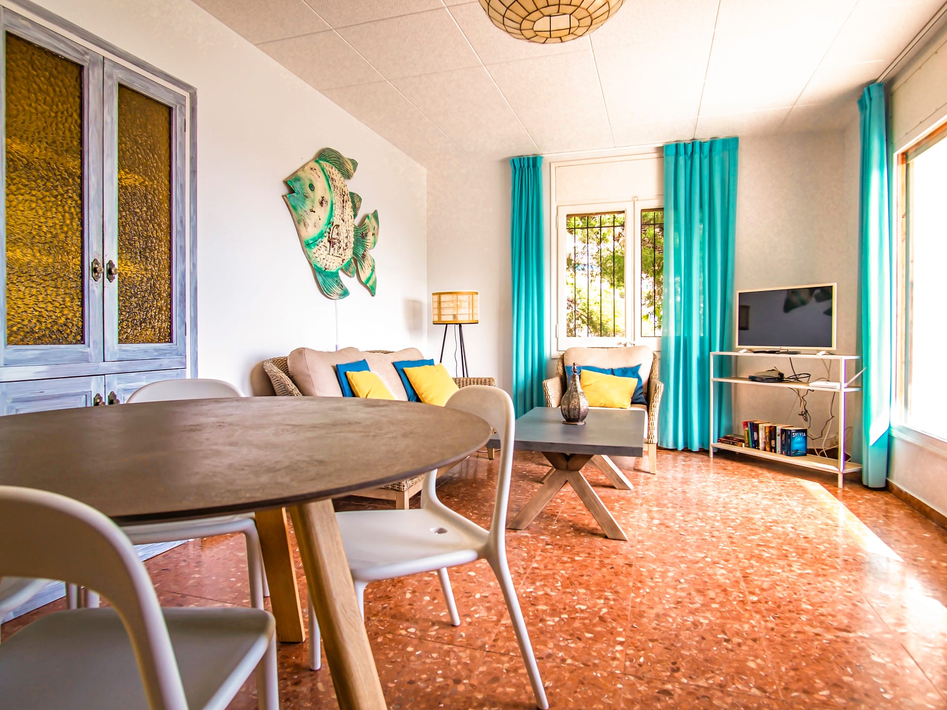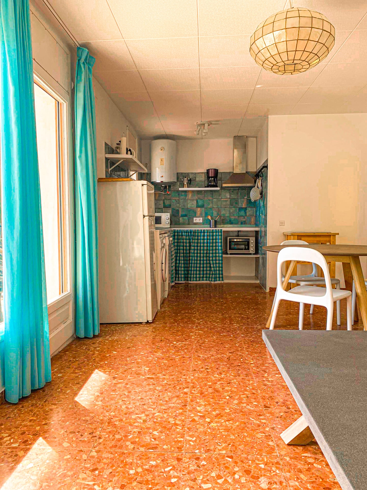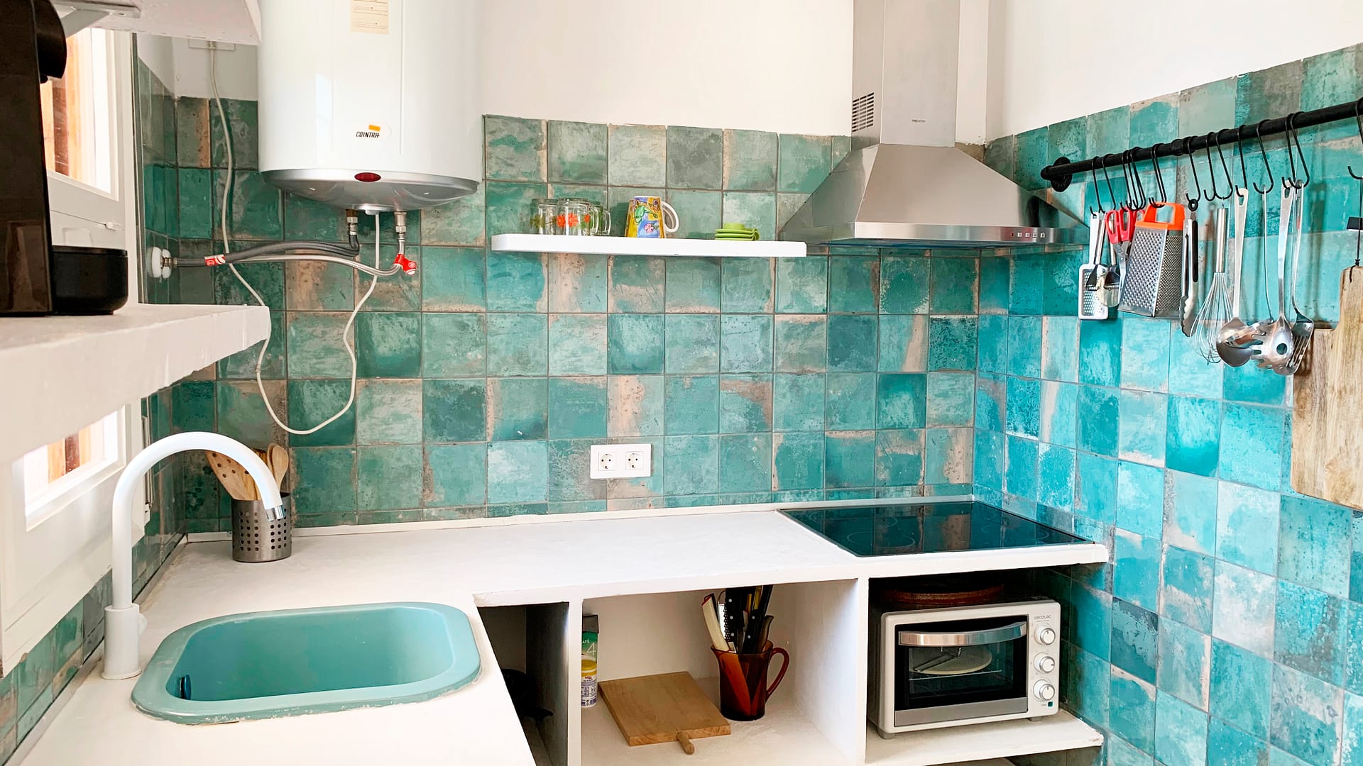 Die Küche mit mediterranem Flair ist ausgestattet mit Geschirrspüler, Elektrogrill, Cerankochfeld, Kühlschrank mit Gefrierfach, 2 Kaffeemaschinen (Filter und Nespresso), Toaster, Wasserkocher, Mikrowelle und Waschmaschine.