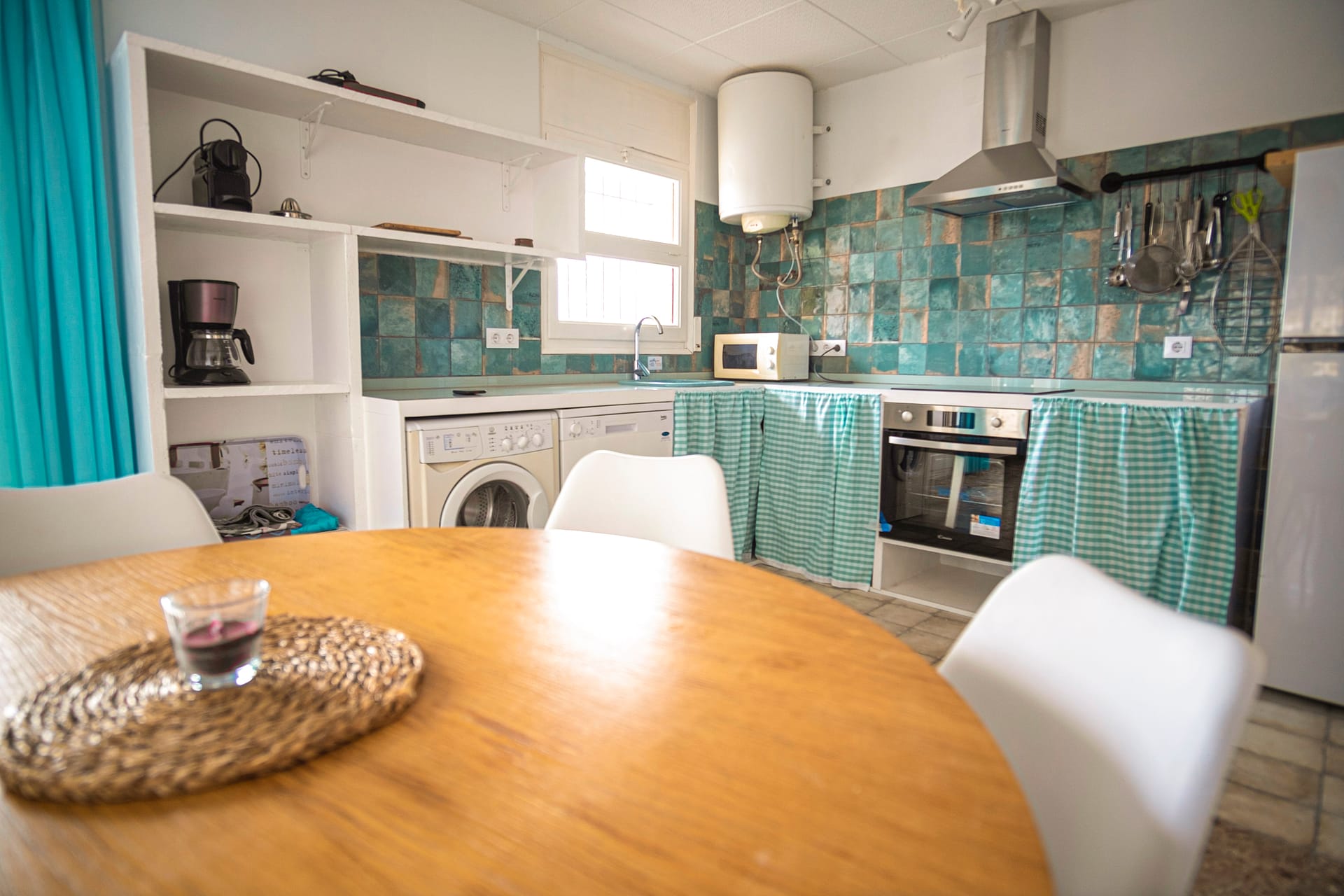 Die Küche mit mediterranem Flair ist ausgestattet mit Geschirrspüler, Elektrogrill, Cerankochfeld, Kühlschrank mit Gefrierfach, 2 Kaffeemaschinen (Filter und Nespresso), Toaster, Wasserkocher, Mikrowelle und Waschmaschine.