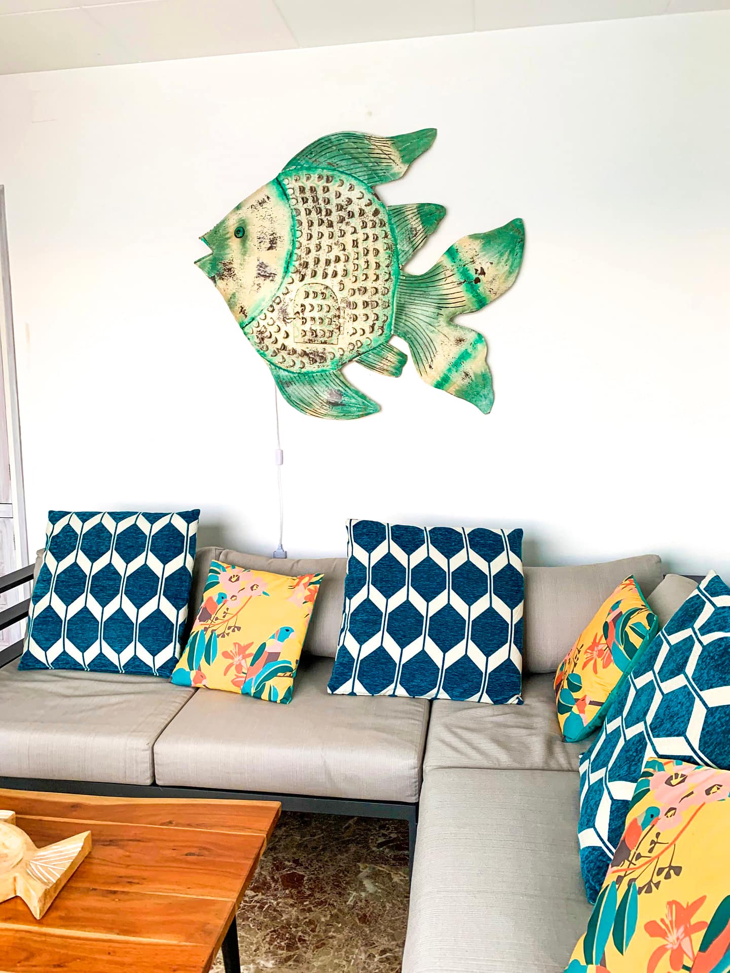 La cuisine au charme méditerranéen est équipée d’un lave-vaisselle, grill électrique, plaques vitrocéramiques, réfrigérateur avec congélateur, 2 cafetières (filtre et Nespresso), grille-pain, bouilloire électrique, micro-ondes et lave-linge.