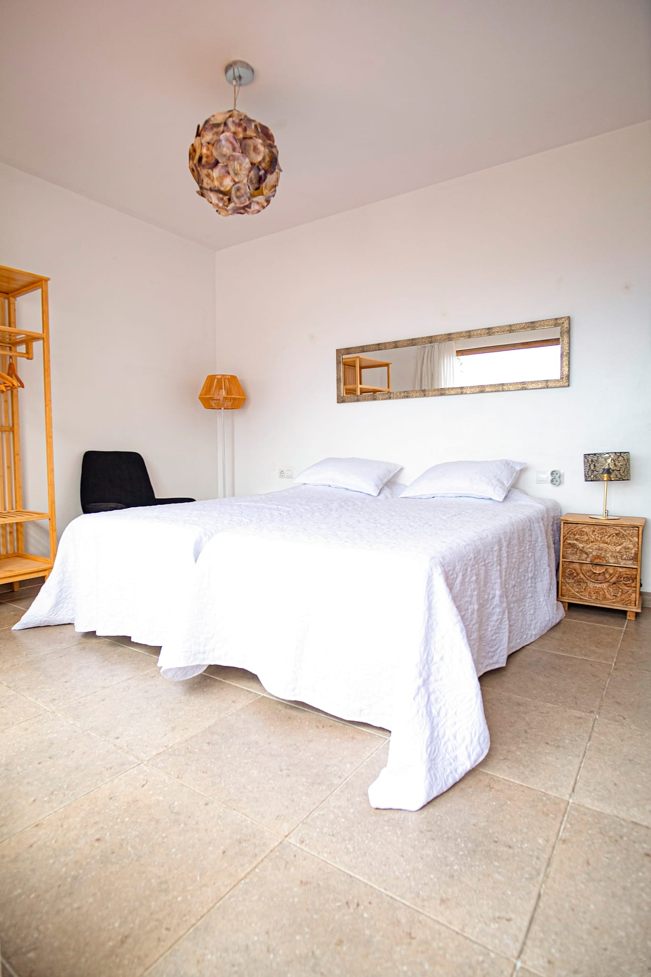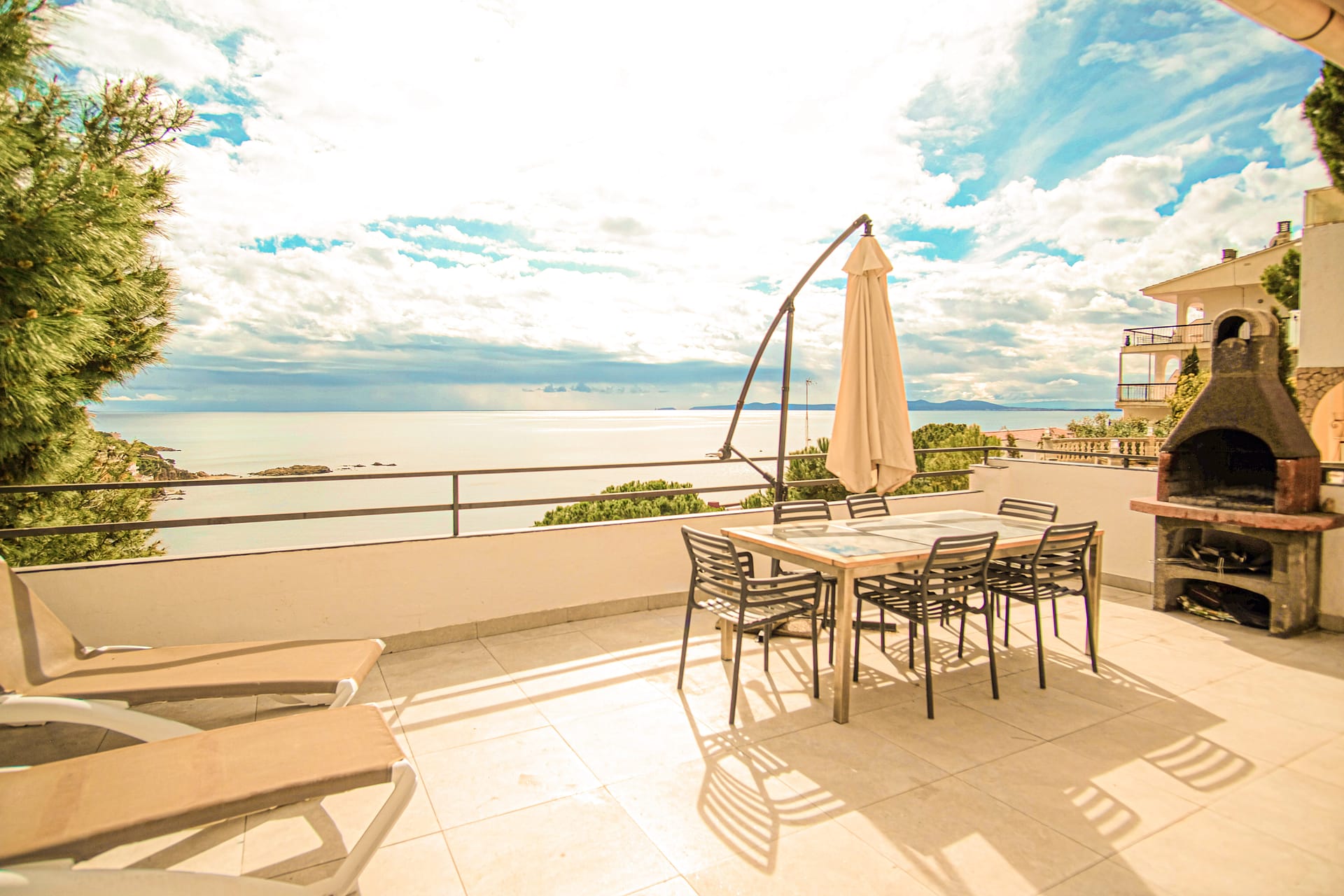L’Appartement 3 de notre maison Casdanna offre la vue panoramique la plus impressionnante sur la mer de nos appartements (la plage est située à 130 mètres) et dispose d’une terrasse de 40 mètres carrés, équipée d’un parasol, d’une table, de chaises et de transats.